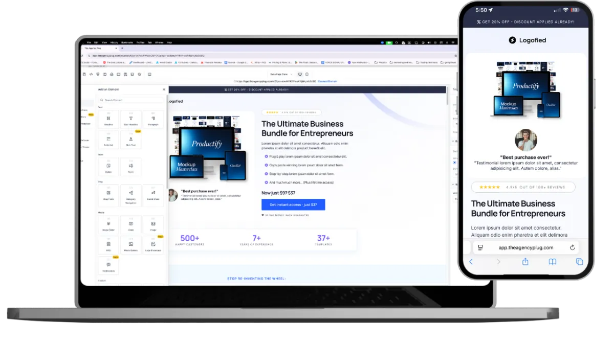 With Agency Plug, you can create unlimited websites and funnels using our drag-and-drop builder — no coding required. Choose from 1,000+ templates to get started quickly, or design your own from scratch.