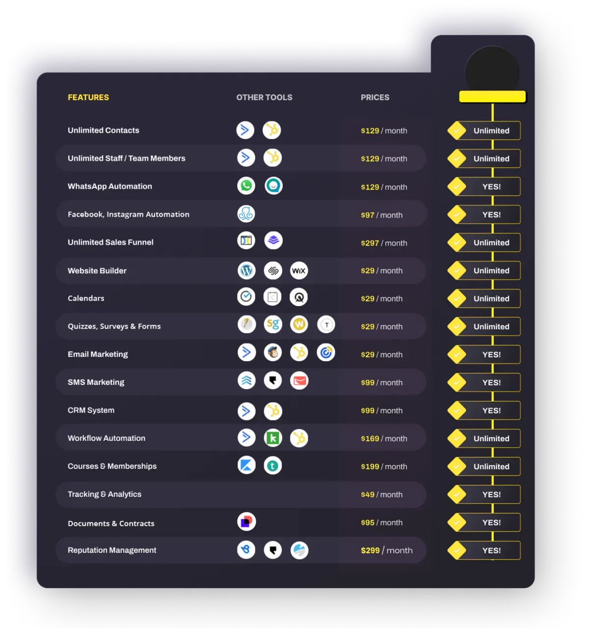 The Webinar System alone is valued at $200/month, but it’s included for free with this plan. You’ll also get Facebook and Google Ad Management, the lowest rates for sending emails and text messages, and full A.I. access for content creation and automation.