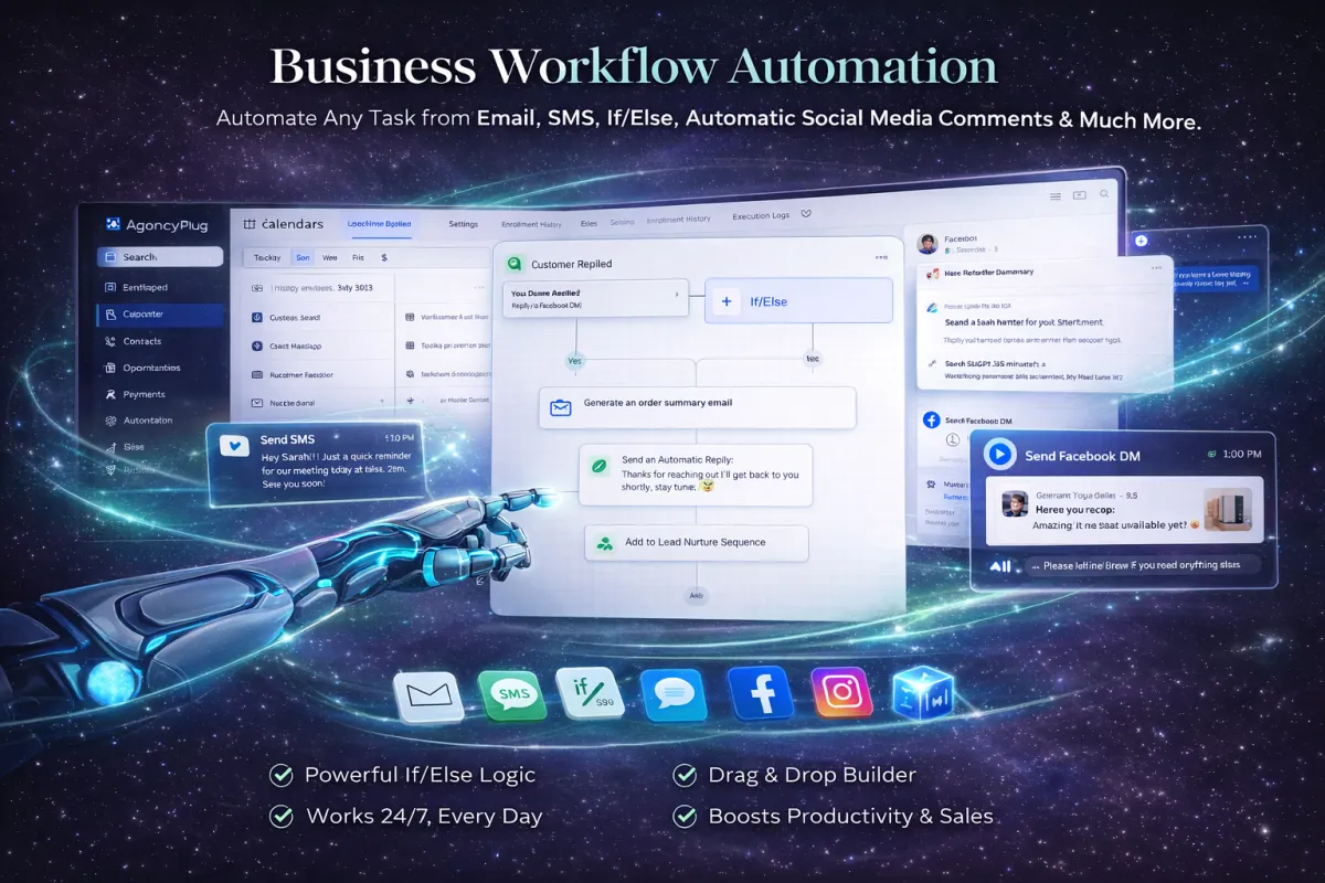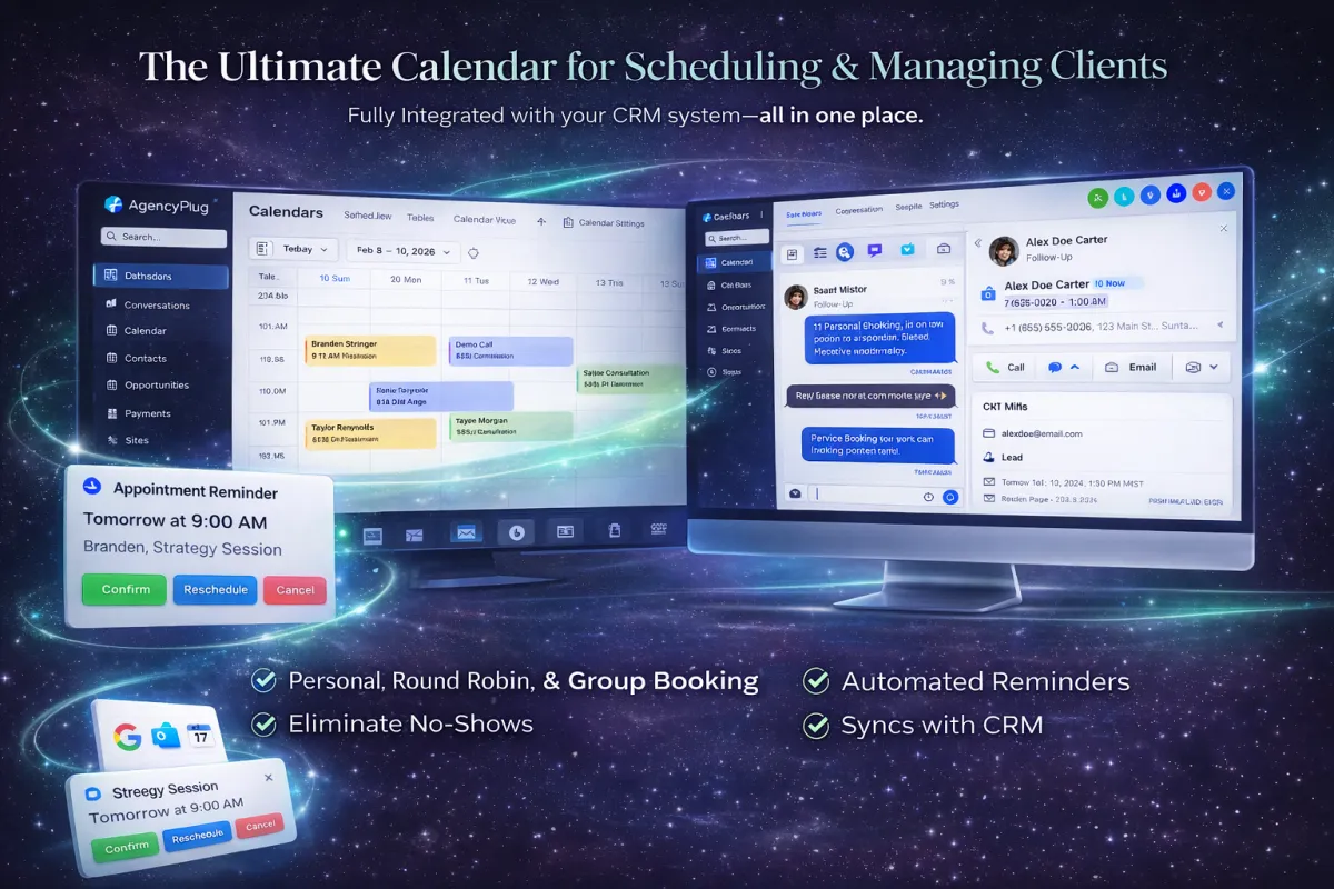 Running a business is hard. Agency Plug makes it easier — websites, CRM, automation, messaging, bookings, and webinars in one place. Simple. Powerful. Seamless.