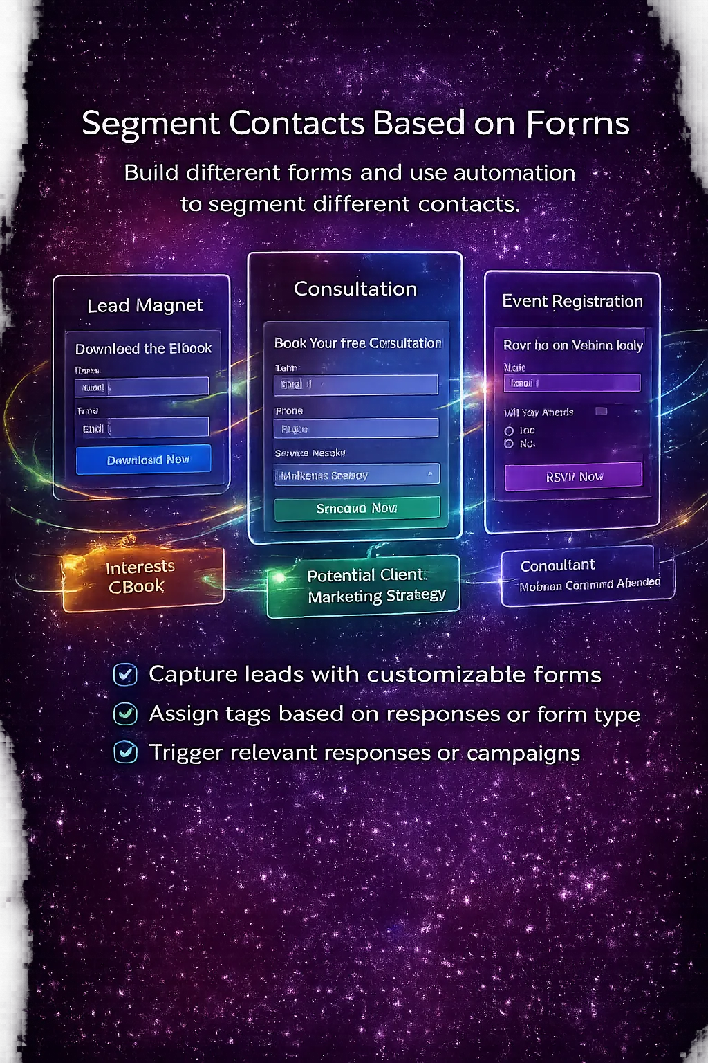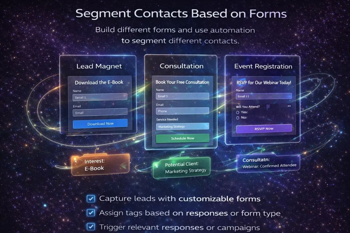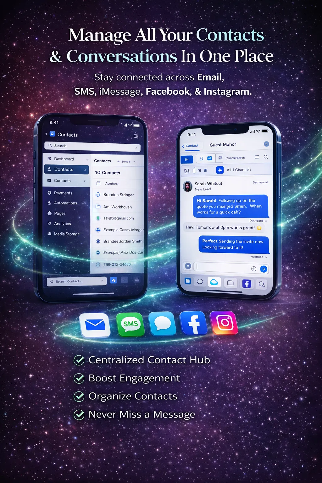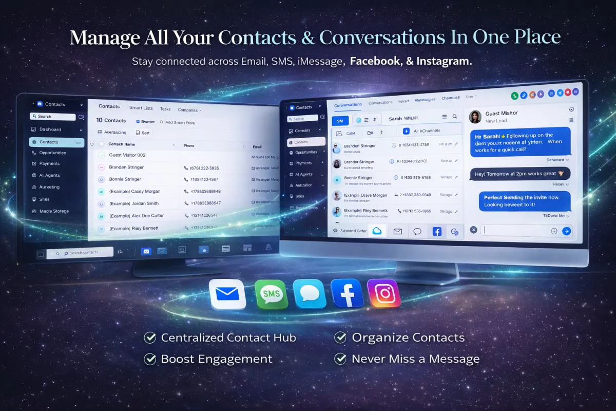 Organize leads and customers, apply tags, track conversations, build pipelines, and trigger automations based on actions or behaviors.