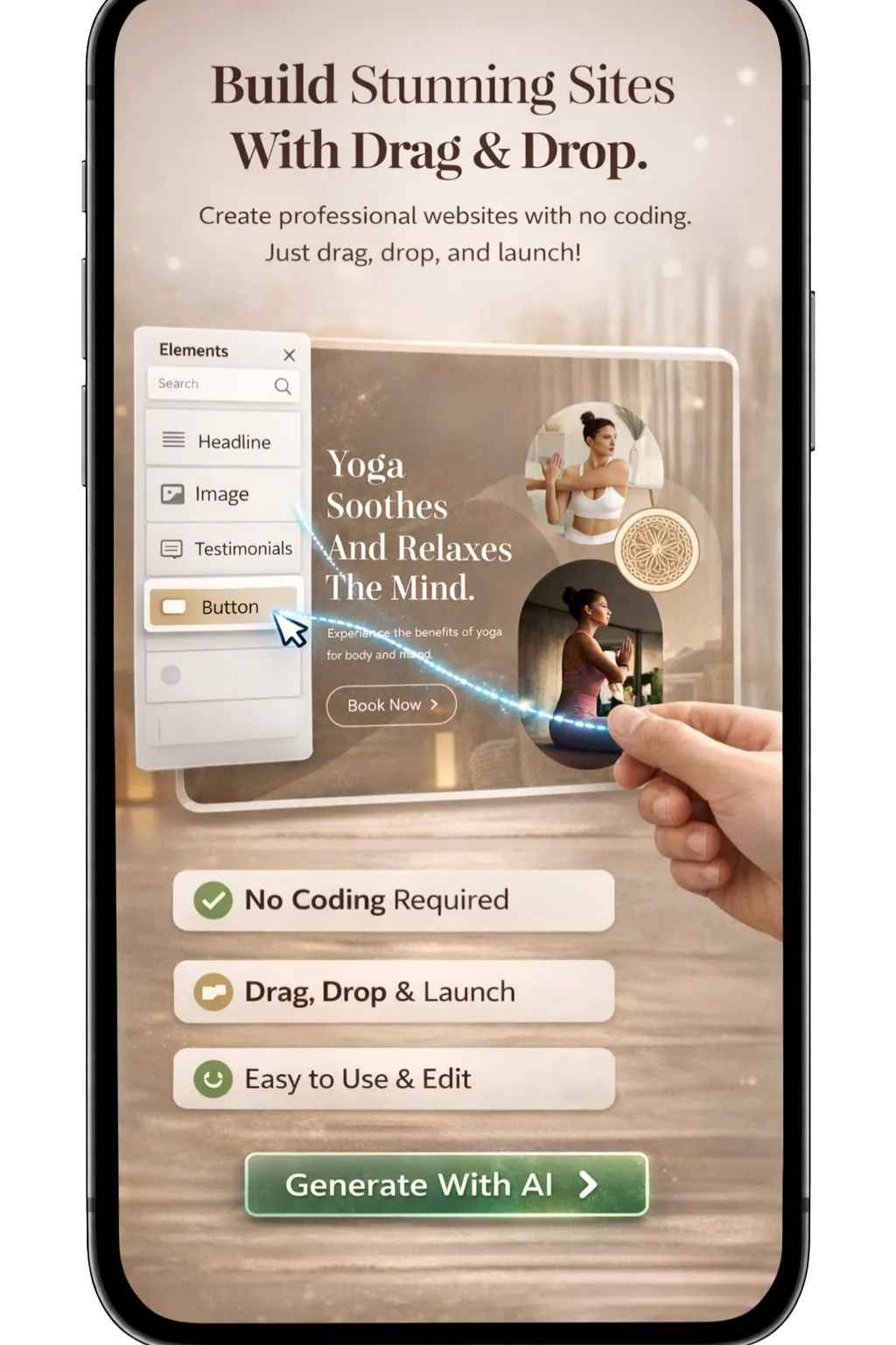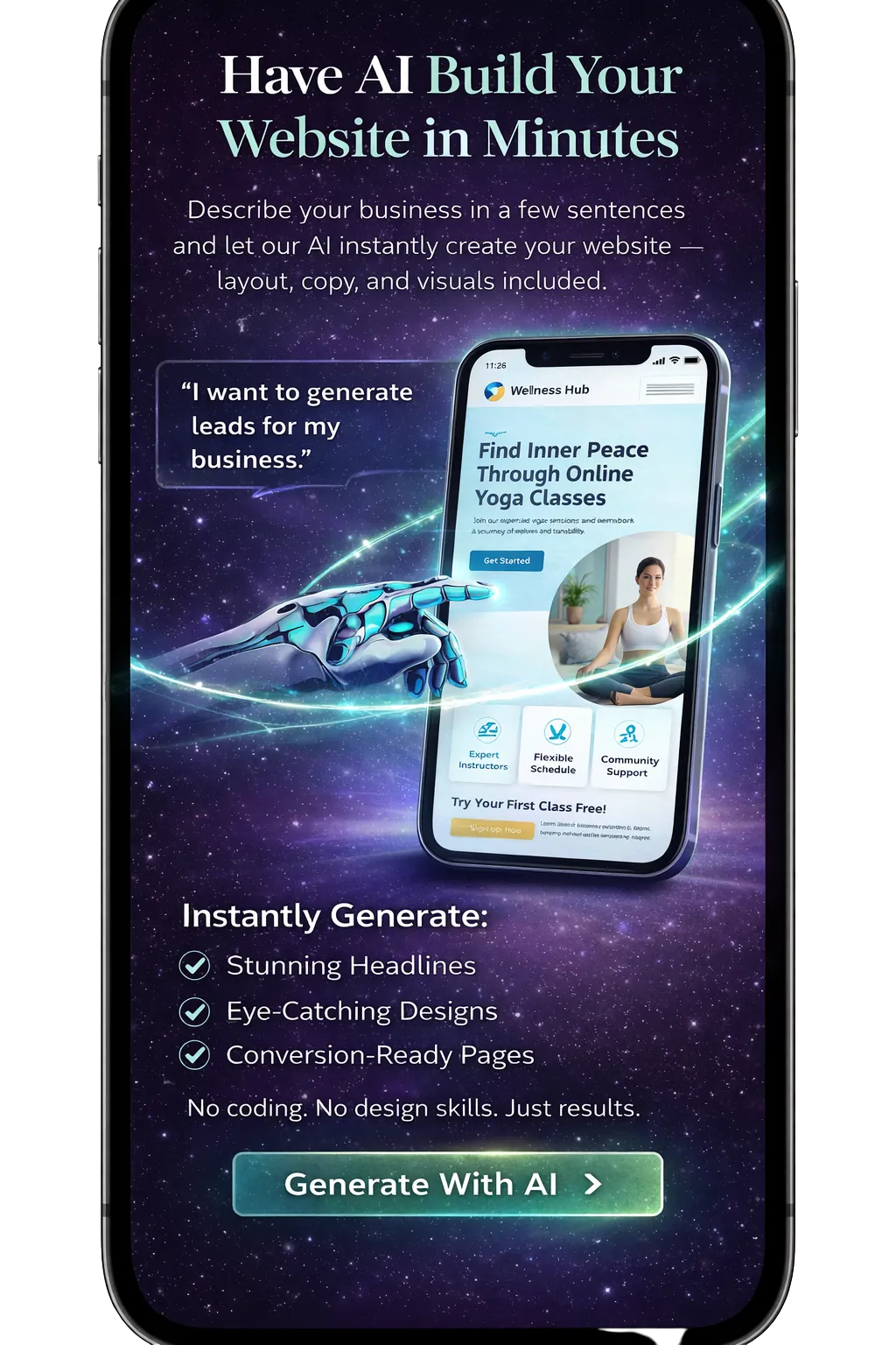 Just chat with our AI and watch your website come to life—no coding skills needed.
